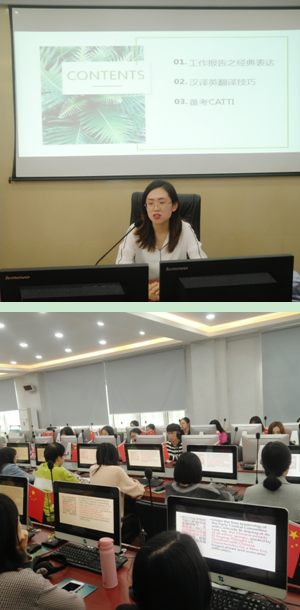 2020年10月9日下午,开云电子“撷英译坊翻译大讲堂”系列活动第四期讲座“政宣翻译与CATTI考试”在至善楼二楼同声传译实训室成功举办。讲座由译坊导师王珊珊主讲,译坊负责人李晓老师主持,译坊导师和学员参加了此次讲座。