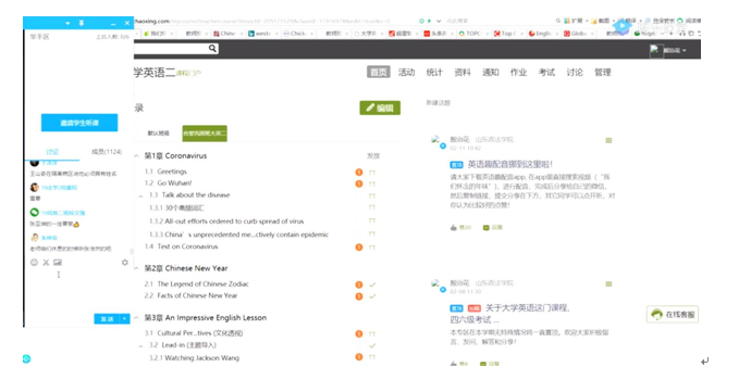 《大学英语(二)》教师积极探索网络授课思路和途径,最终主要运用超星学习通建课加腾讯课堂网络直播的方式。在符合大学英语教学大纲的前提下,制作并上传录播视频,并且充分发挥超星学习通整合各类教学资源的优势,利用音视频、期刊、图书资源辅助学生解答英语学习中的问题,设置任务点并辅以测试,保证并且检验学习效果。通过设置讨论,为学生提供思辨专区,学生还可以分享和发布自己在家学习的笔记以及好的方法和思路。线下自学,效果良好。