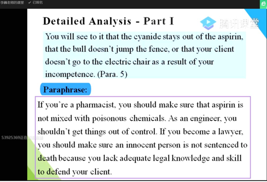 例如,李莉老师结合当前疫情形势讲述专题“Fighting against the novel coronavirus”, 从词源及词义的区别上,由远及近掰开揉碎地对近义词epidemic, pandemic & plague 作出讲解。