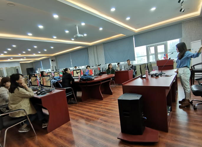 2019年10月24日下午,公外教研室在同声传译实验室组织了微课教学观摩活动。殷治花老师向大家展示了其所在微课团队获“第五届中国外语微课大赛”山东省赛一等奖的视频并进行了现场说课,开云电子教师集体观摩。展示活动后,毕院长进行了精彩的点评与指导。随后,老师们各抒己见,就微课制作和说课内容进行了热烈的研讨。