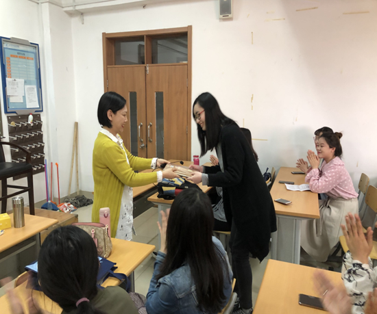 会上,三位商务英语专业优秀毕业生就考研、出国、教师资格证考试分享经验,主要讲述了如何确定考研目标城市和专业、如何备考、出国留学雅思考试的注意事项、如何准备教师资格证笔试和面试等内容,并现场对学弟学妹们答疑解惑。解答完毕后,梁军童老师代表教研室全体老师为毕业生们送上纪念品和祝福。