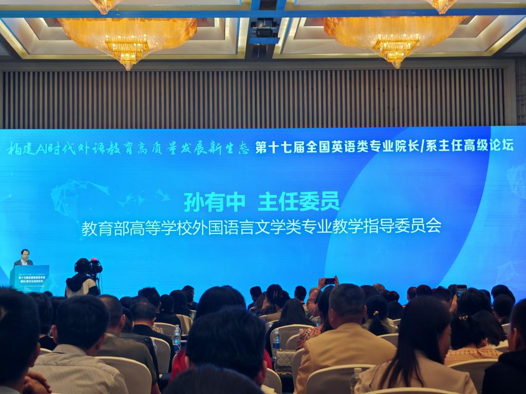 本届论坛主题为“构建AI时代外语教育高质量发展新生态”,设主旨演讲、专题报告、平行论坛三大模块,五百余位来自全国各地的英语类专业院长/系主任线下参会,围绕英语专业建设与课程改革、外语教育与教师专业发展、跨文化教育与国际传播能力建设、高质量英专教材与教学、产教融合与高质量人才培养等英语类专业发展的核心议题进行深入探讨。