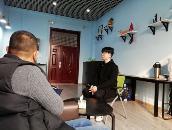 通过线下座谈的方式与17级刘飞同学进行交流慰问