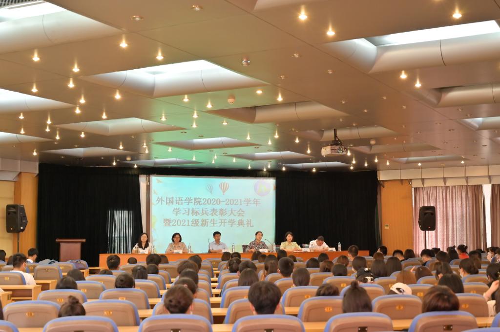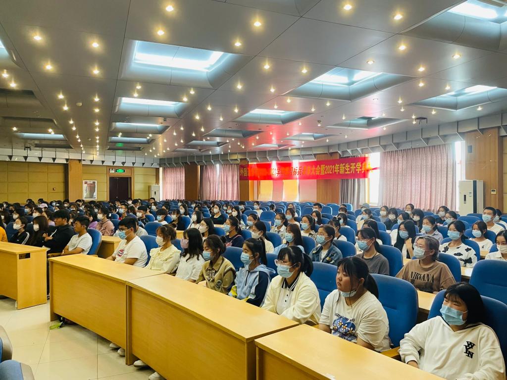 大会伊始,高慧副院长宣读2020-2021学年学习成绩优异的先进个人并予以表彰。毕文娟院长介绍了学院的整体情况,并提出四个“s”——自我认知、自我规划、自我管理、自我提升,勉励大家在新的环境中成长成才;教师代表梁军童老师从教学的角度和同学们分享学习经验,并向大家提出了殷切期望。20级高雯婷同学作为老生代表发言,高雯婷同学在发言中号召学弟学妹在大学中要勤学笃行、砥砺外语学习初心;勤于与他人交流合作,发扬协作精神。21级立格班赵晨阳作为新生代表发言,他回顾过去、展望未来,表达了对大学生活的憧憬和励志勤学的理想信念。孙书国书记首先对大一新生的到来表示热烈欢迎,在讲话中,他勉励同学们实干奋进,告诫新同学要扣好人生的第一粒扣子,用马克思主义照亮青春之路,坚定理想信念。大会最后,苏晓轶老师做总结发言,鼓励全院砥砺前行,为外院的明天共同续写新的篇章。