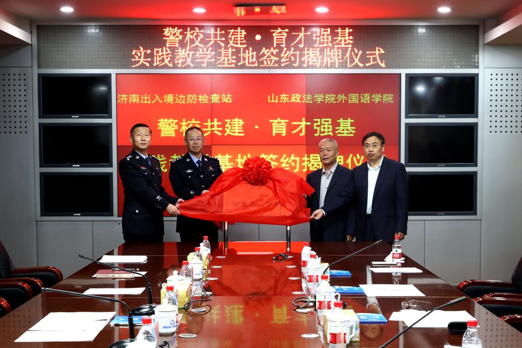 仪式现场,山东政法学院开云电子院长毕文娟与检查站政治处主任杨强共同签署实践教学基地共建协议书,许海波副院长、张玉成处长与检查站任晓宁站长、王磊政委共同为实践教学基地揭牌。