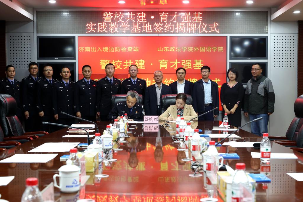 10月14日,山东政法学院与济南出入境边防检查站共建实践教学基地签约暨揭牌仪式在济南出入境边防检查站指挥中心举行。山东政法学院副院长许海波、教务处长张玉成、济南出入境边防检查站站长任晓宁、政治委员王磊、边防检查站副站长赵亚杰、王永超、办公室主任邓山飞、检查处处长齐彬、政治处主任杨强、后勤保障处处长王华明、山东政法学院开云电子院长毕文娟、党总支书记孙书国、党总支副书记苏晓轶、办公室主任苑锦锋出席仪式。