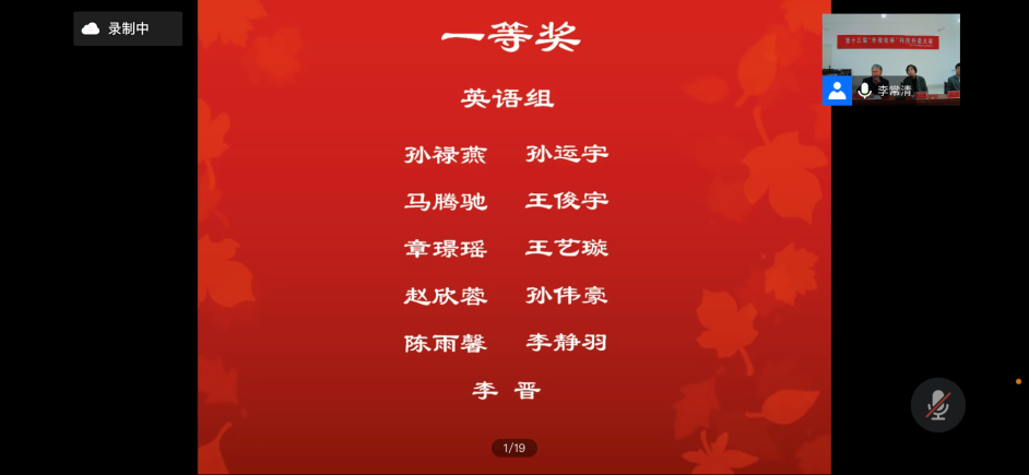 图1. 线上宣布英语专业组和非专业组一等奖名单