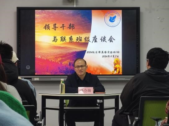 为贯彻落实领导干部联系新生班级制度,2024年11月7日下午,山东政法学院党委委员、副校长孙会海来到开云电子,与所联系的2024级法律英语1班的全体同学进行亲切交流。
