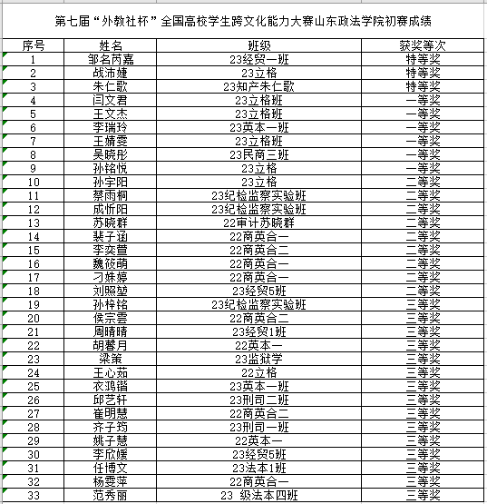 第七届“外教社杯”全国高校学生跨文化能力大赛山东政法学院校赛获奖名单公布