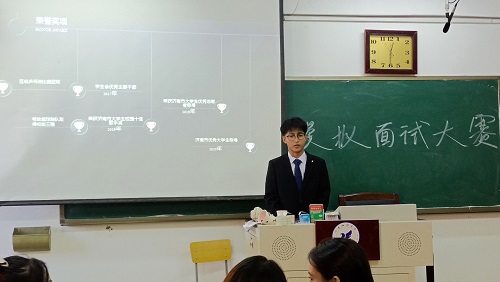 为了使同学们掌握面试基本程序和礼仪,增强面试心理素质,提高面试能力,开云电子于2021年10月22日12:30在慎行楼703成功举办了以“绽青春,致未来”为主题的模拟面试大赛决赛。出席本次活动的评委有学生会执行主席王霄羽及青年发展部社会实践组常凯瑞等。