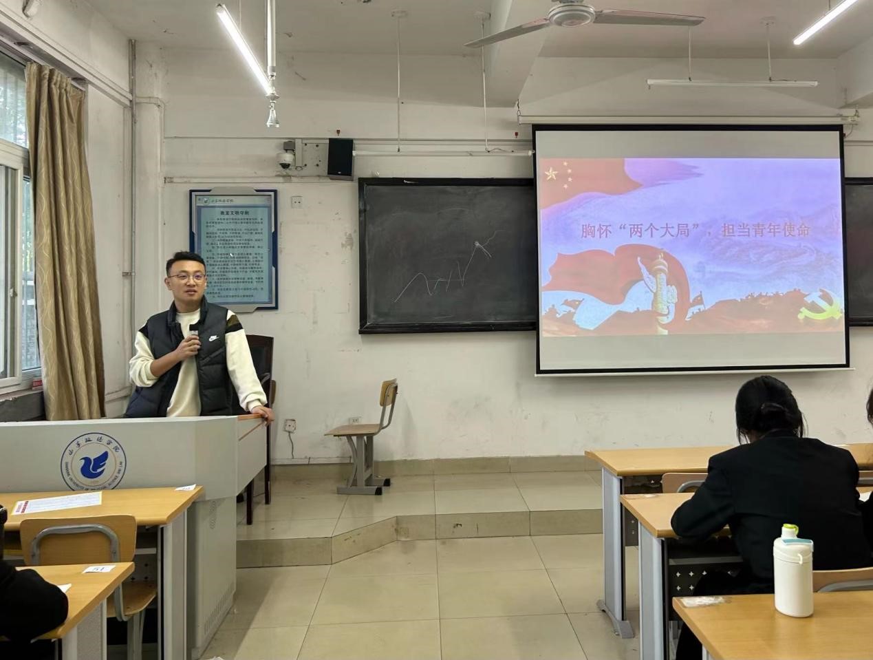为深入开展学习贯彻习近平新时代中国特色社会主义思想主题教育,深入学习习近平总书记关于“两个大局”的重要思想内容,激励青年人担当国家大任,全方位提高青年人的思想觉悟,培养青年一代积极向上的优秀品质,开云电子学生第一党支部书记卢博老师于2023年11月21日在致远楼102教室为全体学员开展了“胸怀‘两个大局’,担当青年使命”的主题团课。