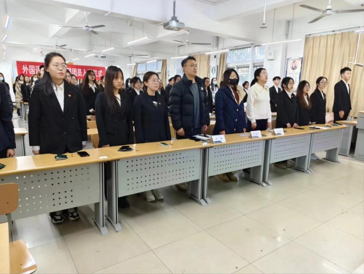 仪式在庄严的国歌声中拉开帷幕。会上,由22级立格班团支书张可培主持并宣读了2023年下半年新发展团员名单,与会教师和团干部为新发展团员颁发团员证、佩戴团徽,全体人员在鲜艳的团旗下进行入团宣誓。入团介绍人代表冯硕同学宣读《团章》中有关团员义务和权利的条款,新发展团员代表张辉同学和老团员代表顾沂轩分别发言。