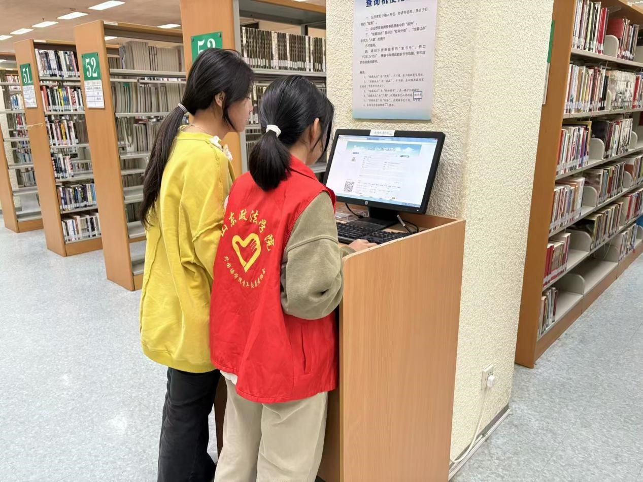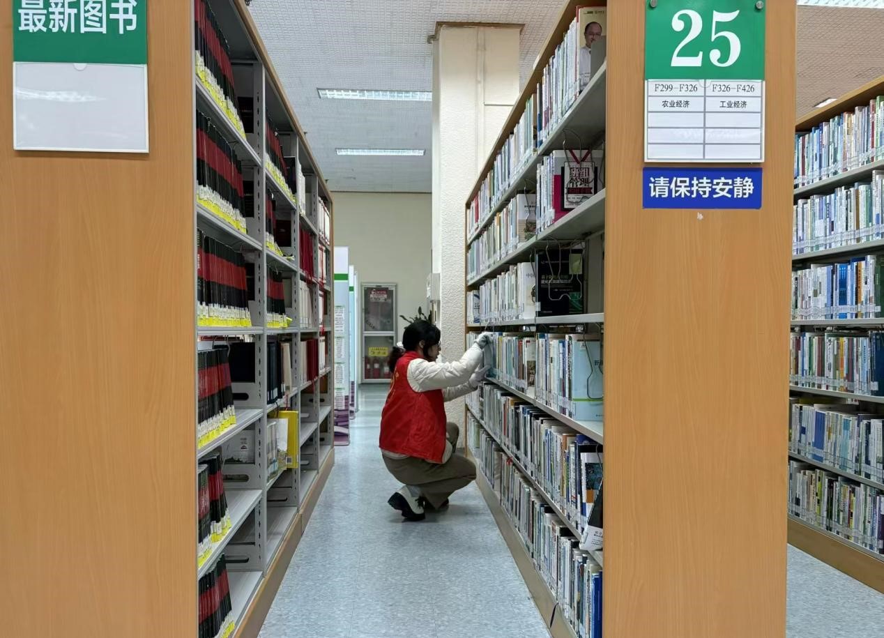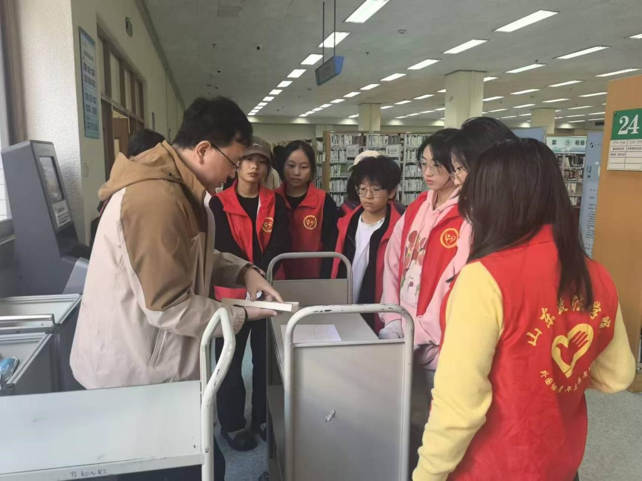 同时,志愿者们也学习到了如何通过自助借还机来借还书籍,帮助读者更好的借阅图书。在此次志愿服务活动中,不乏读者向志愿者询问各种问题,志愿者们耐心解答,悉心提供帮助,切实帮助读者解决问题。身穿红色马甲的志愿者们忙碌的身影让图书馆更加充满生机。
