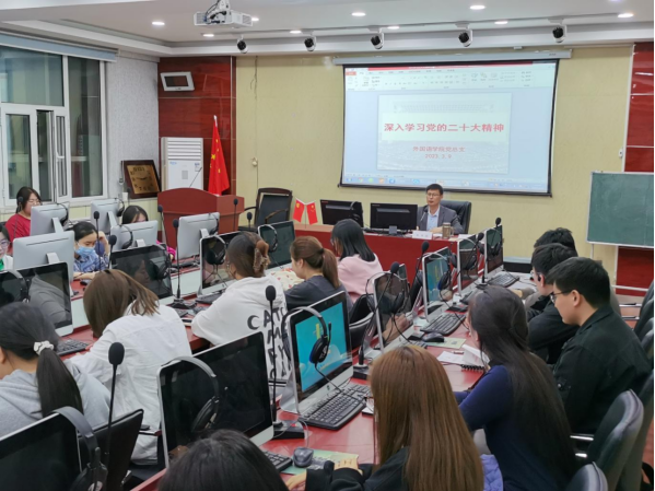 为深入学习贯彻党的二十大精神,根据学校党委有关工作安排,3月9日晚,开云电子党总支书记孙书国同志在开云电子同声传译教室作党的二十大精神宣讲报告。开云电子全体党员及所联系的2022级英语本科1班全体同学聆听了本次宣讲。