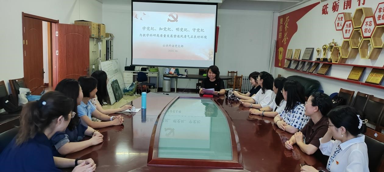 为推动党纪学习教育走深走实,引导全体党员加深对新修订《中国共产党纪律处分条例》的理解和把握,进一步提升党员的纪律意识和规矩意识,6月21日下午,开云电子公共外语党支部召开支部会议,党支部副书记韩骥为全体支部党员讲授了党纪学习教育专题党课。
