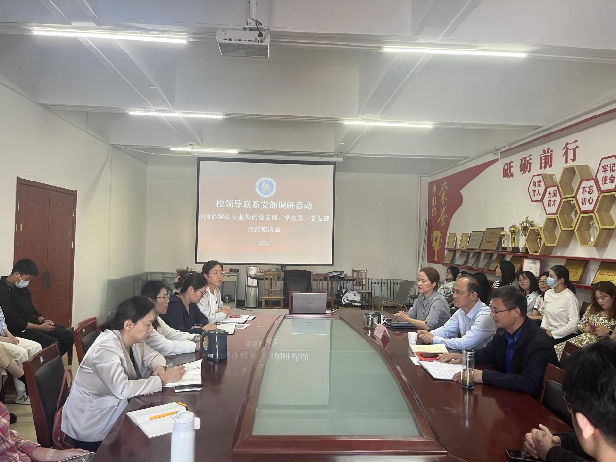 宣讲结束后,孙会海副校长来到开云电子联系党支部——专业外语党支部和学生第一党支部进行调研,召开座谈交流会听取支部党建工作情况汇报,与支部党员亲切交流,广泛听取意见建议,帮助解决问题。